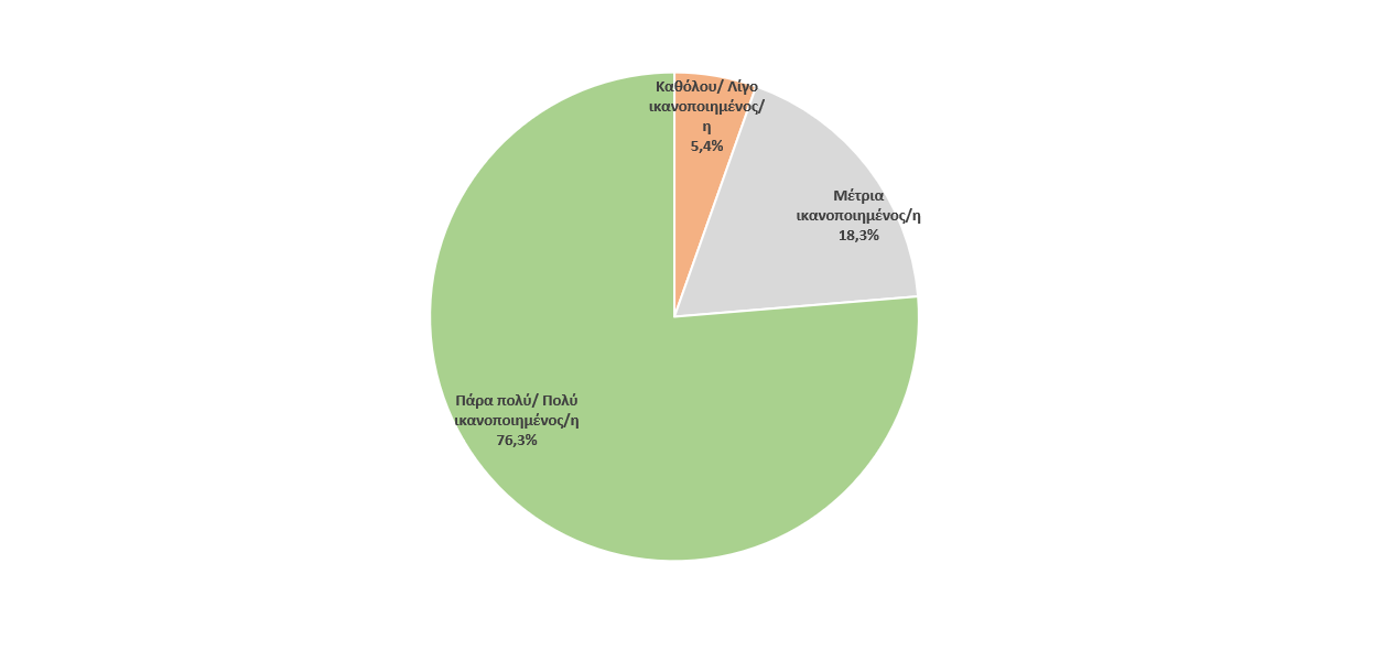 Από την ανάλυση των απαντήσεων προκύπτει ότι οι υποψήφιοι που απάντησαν, δήλωσαν σε μεγάλο ποσοστό ικανοποιημένοι τόσο από την πληροφόρηση και υποστήριξη πριν από τη διαγωνιστική διαδικασία όσο και από τη διεξαγωγή της κατά τις ημέρες εξέτασης. Ενδεικτικά, το 76,3% των υποψηφίων δήλωσε «πολύ» ή «παρά πολύ ικανοποιημένο» από το σύνολο της διαγωνιστικής διαδικασίας ενώ μόνο το 5,4% δήλωσε «λίγο» ή «καθόλου ικανοποιημένο». (βλ. σχετικό γράφημα).
